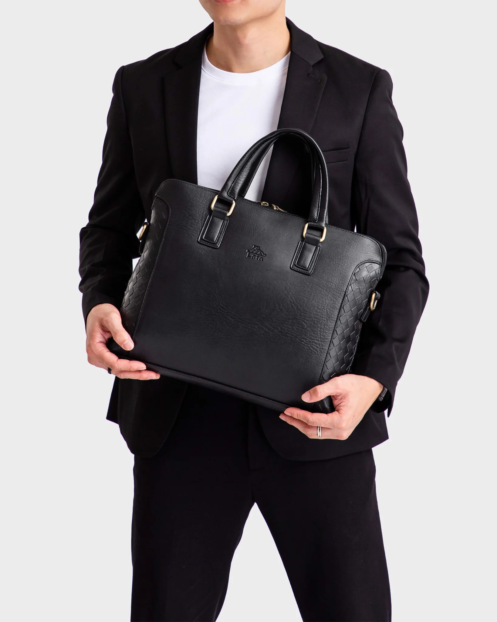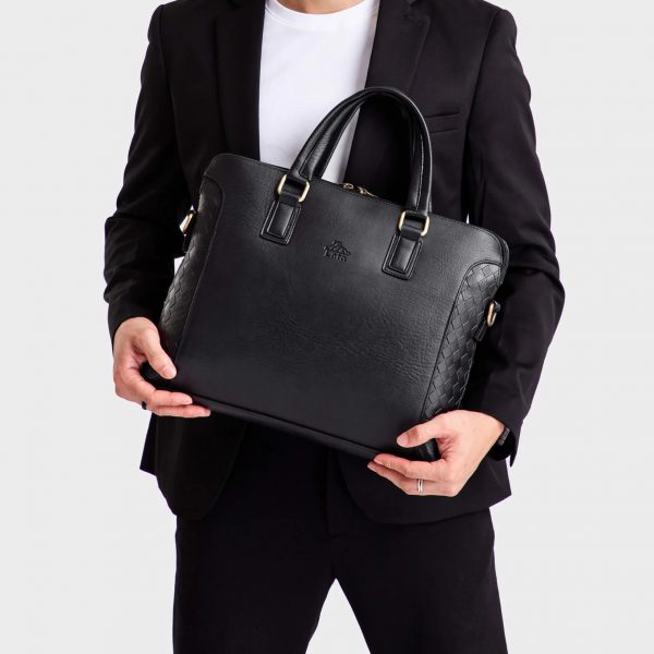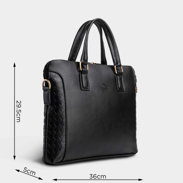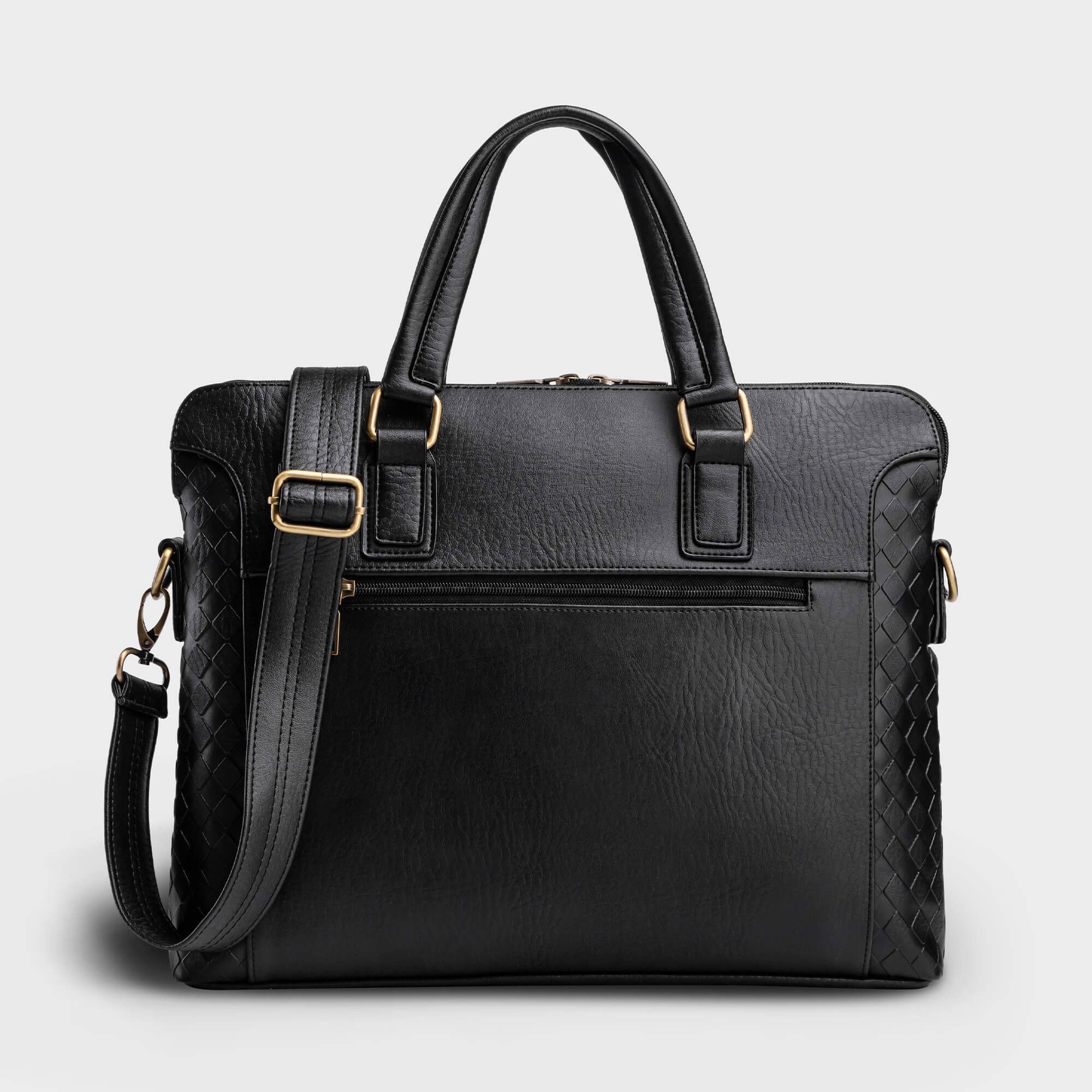 - The roomy main compartment can fit documents, everyday essentials, a laptop or tablet, and features a full-length zipper pocket.