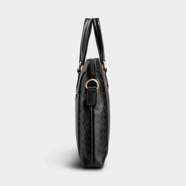 - Features a permanent, padded, and adjustable shoulder strap that extends 60. Convenient top leather grab handle for easy carrying when needed.