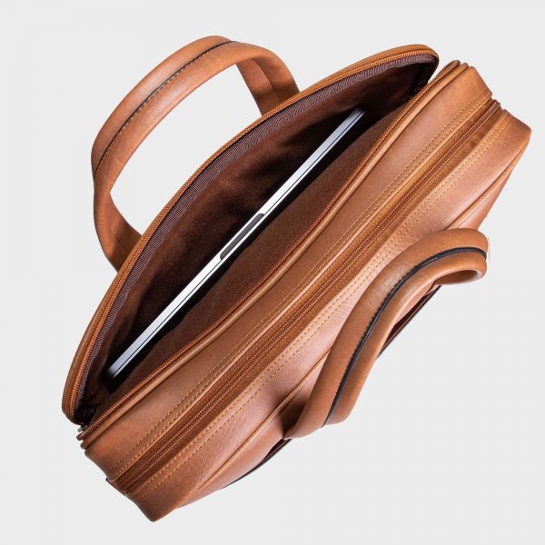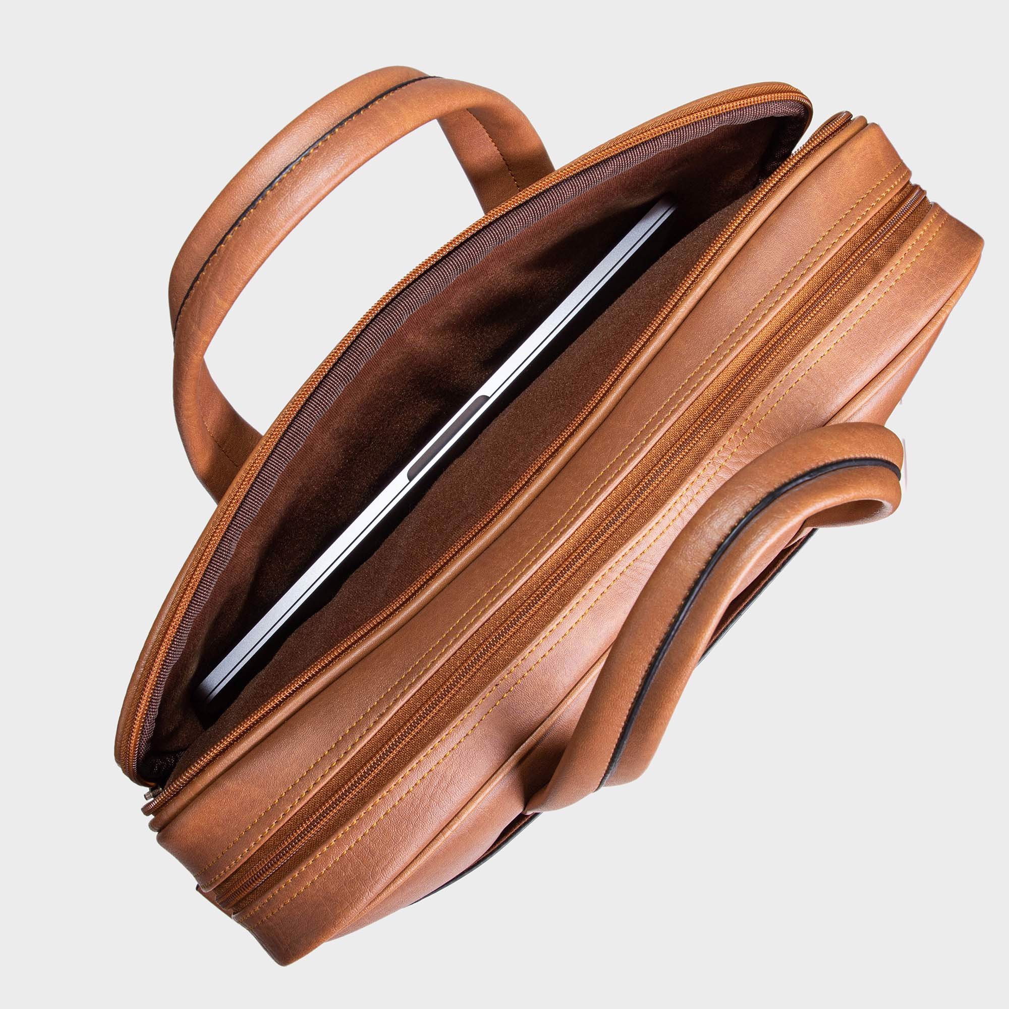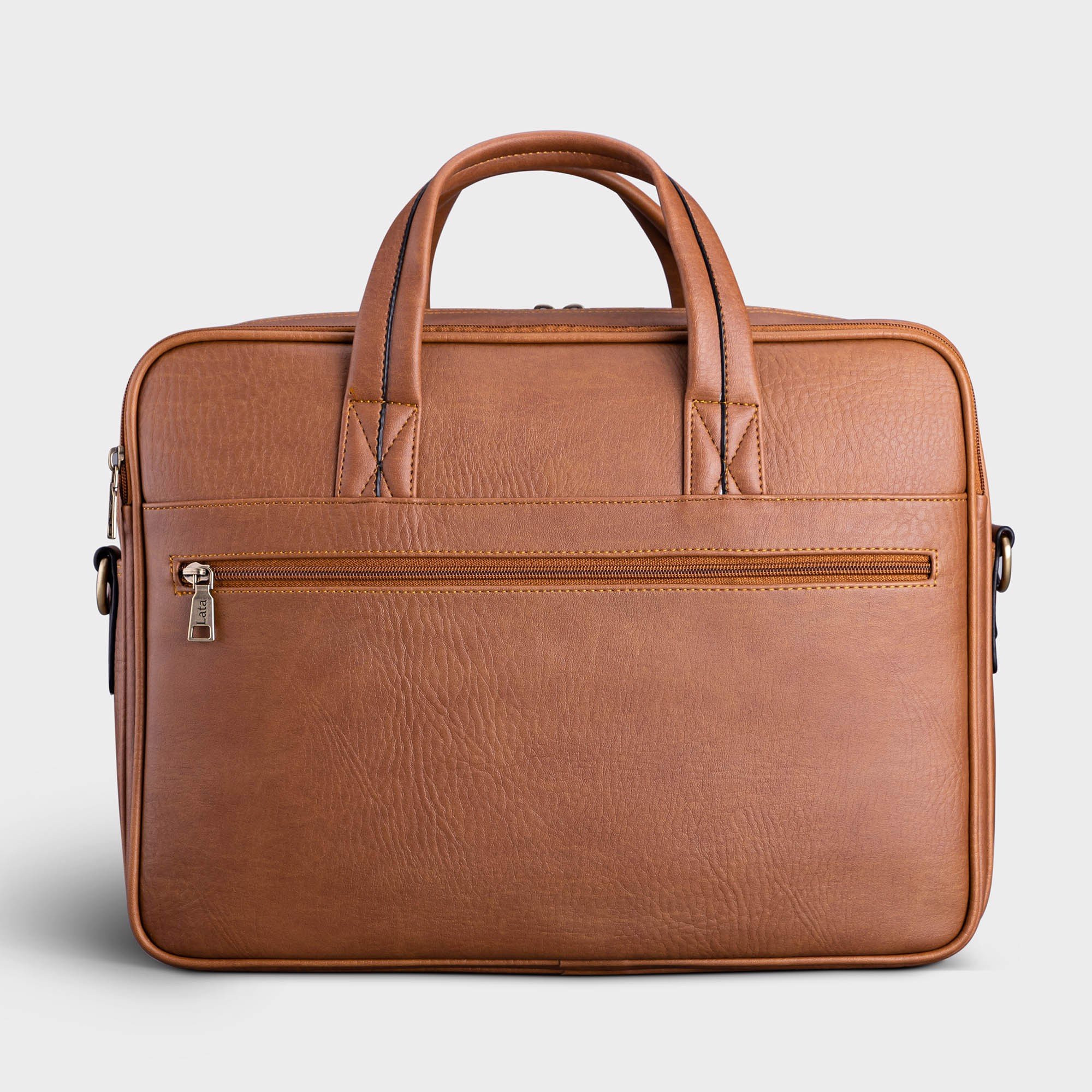 - The roomy main compartment can fit documents, everyday essentials, a laptop or tablet, and features a full-length zipper pocket.